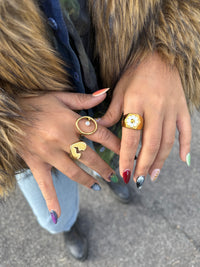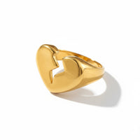 Anillo dorado con un corazón al frente, atravesado por una grieta en el centro. Hecho en acero inoxidable, con acabado liso y sólido, pensado para resistir uso diario sin perder su forma.