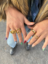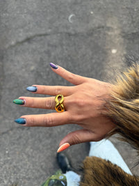 Una pieza chunky que combina simplicidad y fuerza visual, ideal para usar sola o en un mix de anillos statement.